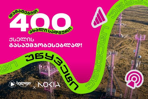 სელფი მობაილი განაგრძობს ქსელის დიდ განახლებასა და განვითარებას. მსოფლიოში წამყვან ტექნოლოგიურ კომპანიასთან Nokia წარმატებული მოლაპარაკების შედეგად, ჩვენ ვზრდით ქსელს 400 ახალი საბაზო სადგურით, საქართველოს მასშტაბით.